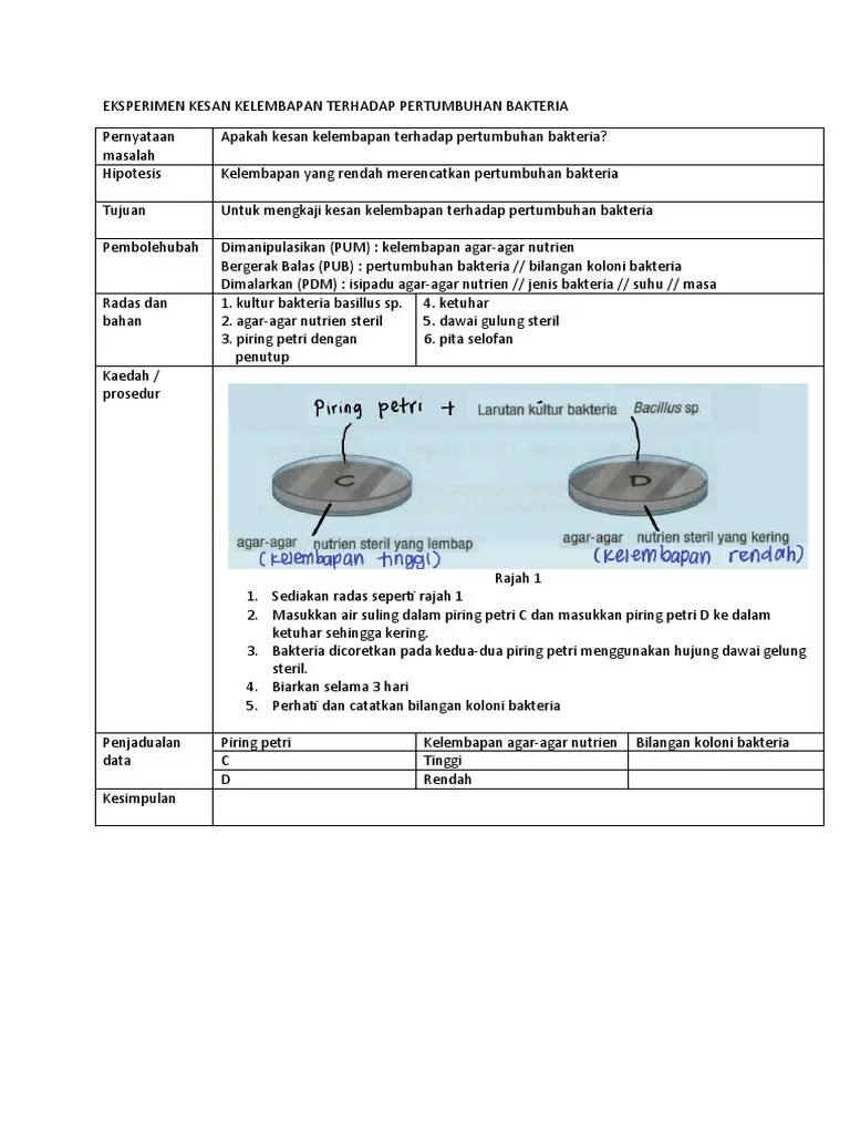 Sains kssm tingkatan 5 bab 1 mikroorganisma nota cuitan dokter. Mengkaji kesan nutrient terhadap pertumbuhan mikroorganisma. Jabatan sains dan matematik · 1. 12 makmal sains anda by dionysia_85. Jawapan eksperimen biologi tingkatan 5 kssm bab, jawapan eksperimen biologi tingkatan 5 bab,. Mengkaji kesan cahaya terhadap · 7 jirim dalam alam . Boleh la refer nota cikgu shu kat sini. Bab 1 mikroorganisma bab 2 nutrisi dan teknologi makanan bab 3 kelestarian alam bab 4 kadar tindak balas bab 5 sebatian . Sains tingkatan 5 kssm i bab 1 i 1.1 dunia mikroorganisma (part 1). Selain itu, ada tujuh eksperimen wajib yang perlu pelajar tingkatan 5 sains kssm. Amali proses sains tg5 membalik buku halaman 1 39 anyflip . Add to my workbooks (4) download file pdf